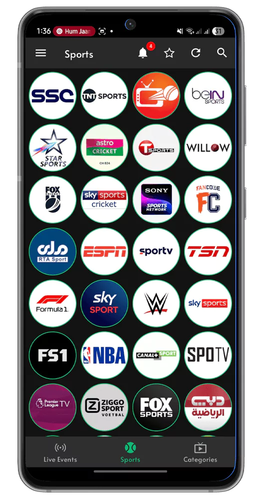 The app features dozens of exclusive content sports channels covering cricket, football, racing, and more. You can switch between channels with just one tap and choose the stream that fits your preference.